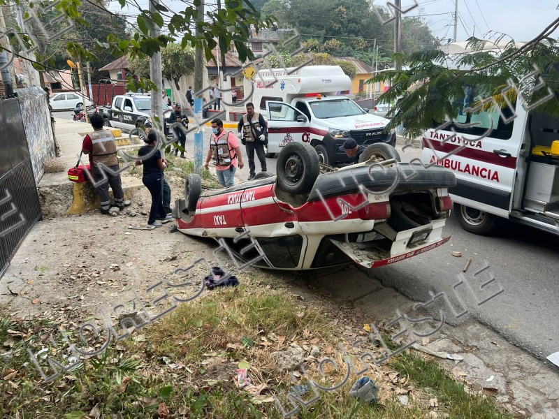 Un taxista resultó lesionado luego de sufrir una aparatosa volcadura cuando circulaba por calles de la colonia Cerro de la Cruz, lo que generó la movilización de cuerpos de emergencia.