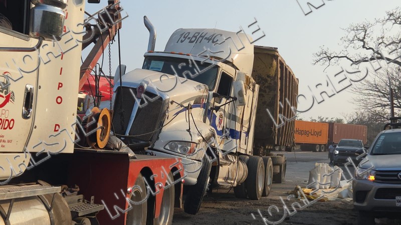 La mañana de este jueves se registró la volcadura de un tráiler sobre el bulevar del kilómetro 13.5, en el tramo que conecta el recinto portuario con la carretera federal 140 Veracruz–Xalapa.