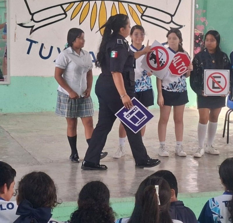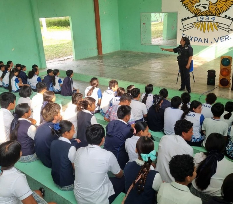 Por indicación del alcalde Daniel Cortina, personal de la Dirección de Tránsito Municipal del Ayuntamiento de Tuxpan impartió una plática de educación vial en la Escuela Secundaria Manuel C. Tello, con el propósito de fortalecer entre las y los estudiantes el conocimiento sobre las señales de tránsito, el respeto a las normas viales y la prevención de accidentes.