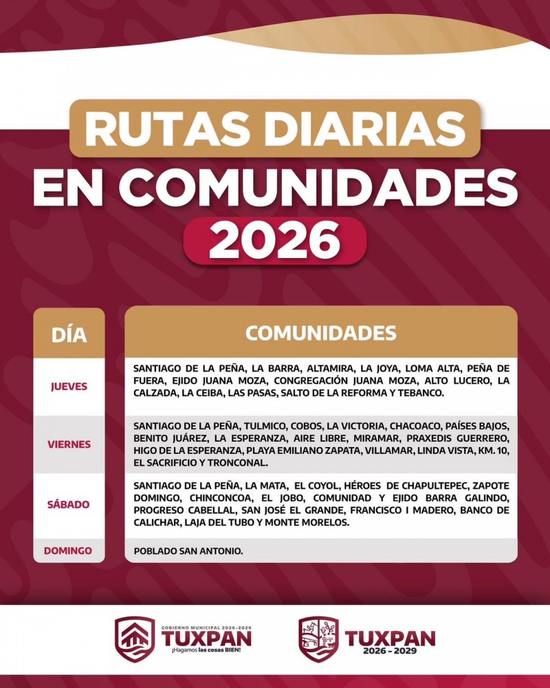 Durante el anuncio también se dieron a conocer las rutas diarias que seguirán los camiones recolectores, con el objetivo de que las familias conozcan con anticipación el día en que el servicio llegará a sus localidades y puedan organizar la disposición adecuada de sus residuos.