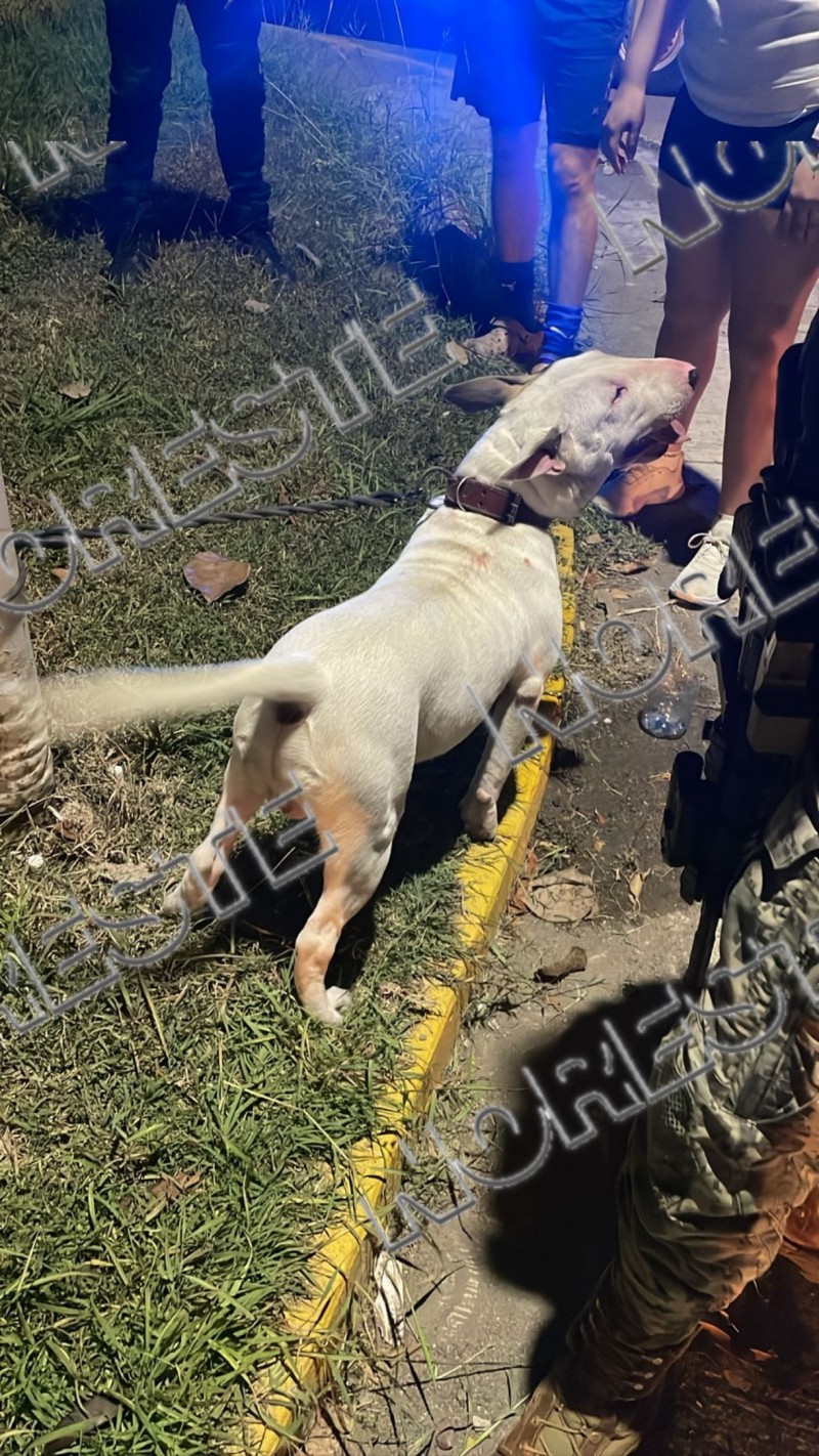 Vecinos de la colonia reportaron al 911 que el perro, que se encontraba solo y aparentemente en abandono, se visualaba agresivo y había atacado a un hombre que transitaba por la zona. Elementos de la Policía Municipal y Protección Civil se trasladaron al lugar, una gasolinera ubicada en el bulevar Ruiz Cortines, y encontraron al perro en un estado de agresividad.