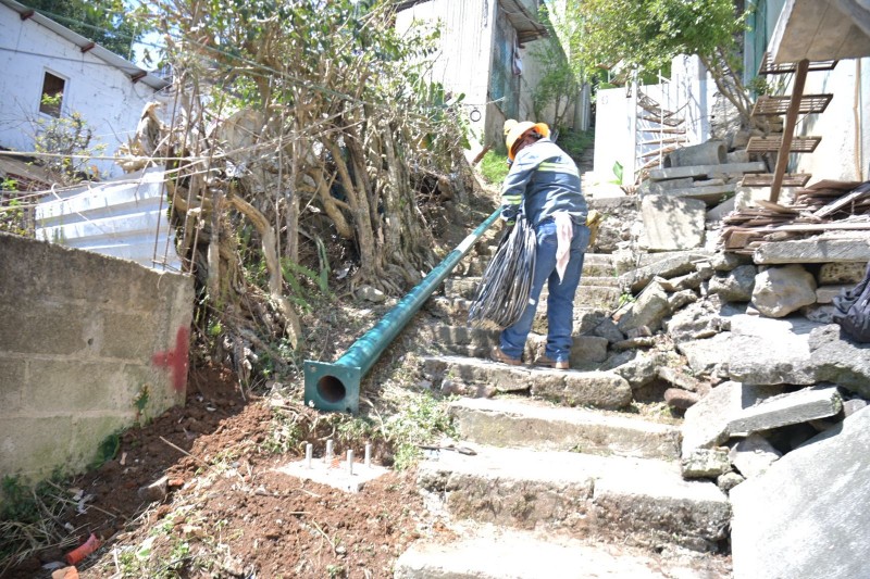 Acompañada por el Síndico Único, Dr. Marco Aurelio Martínez Sánchez, y el Secretario del Ayuntamiento, Mtro. Víctor Hugo Meza Cruz, la Presidenta Municipal instruyó la colocación de dos luminarias en la calle Casuarinas, en atención a las peticiones presentadas por la ciudadanía durante el programa Día del Pueblo.