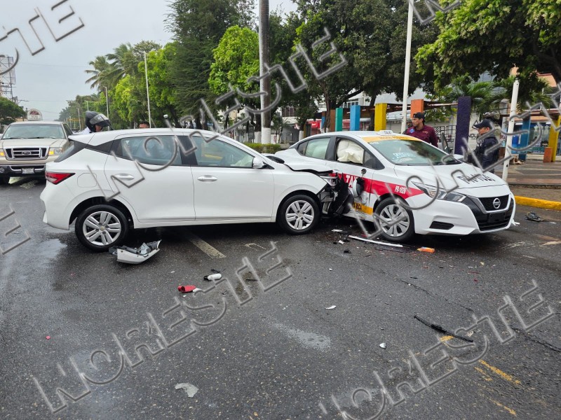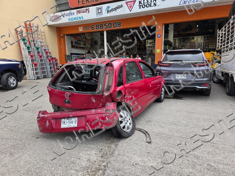 Según los primeros reportes, el conductor del Aveo presuntamente circulaba a exceso de velocidad sobre esta vialidad y terminó impactándose por la parte trasera contra el vehículo rojo. Tras el choque, la unidad continuó su trayectoria y se estrelló contra el taxi que se encontraba en la zona.