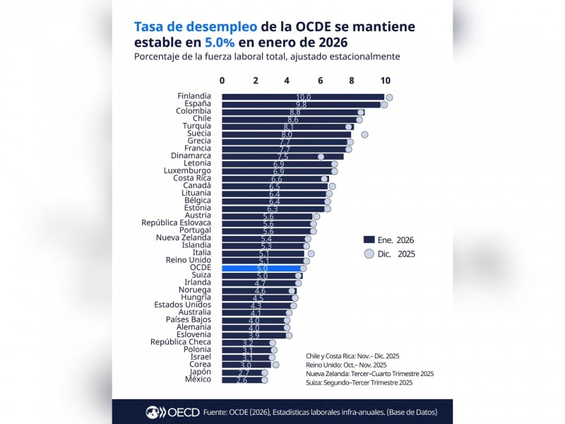 La OCDE, que agrupa a las economías más desarrolladas y a diversas naciones emergentes, sitúa a México por encima de países con mercados tradicionalmente robustos, lo que subraya la tendencia de crecimiento en la generación de oportunidades laborales en el territorio mexicano durante el presente periodo.