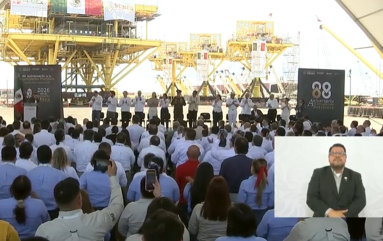 “A Pueblo Viejo, Veracruz vamos a celebrar, conmemorar, recordar la expropiación petrolera de hace 88 años, un 18 de marzo de 1938. Y vamos a mostrarles varias plataformas petroleras que se hicieron por Pemex. Iniciaron con el presidente López Obrador, con la administración de Octavio Romero en Pemex y se están terminando ya para irse a la explotación de petróleo”, enfatizó la presidenta.