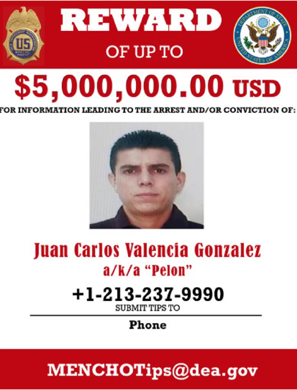Autoridades de México describen a Juan Carlos Valencia González como “extremadamente violento”, además de que el Gobierno de Estados Unidos ofrece una recompensa de cinco millones de dólares por información que lleve a su detención.