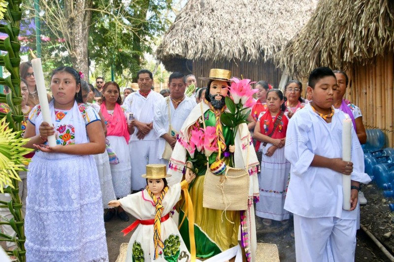 Esta ceremonia se lleva a cabo en el Kantiyán, con la participación de la comunidad del Centro de las Artes Indígenas, habitantes de El Tajín y visitantes que se suman a esta celebración. Abuelas y abuelos, junto con maestras, maestros, alumnas y alumnos, acompañaron a su santo patrono, San José, a lo largo de este significativo trayecto.
