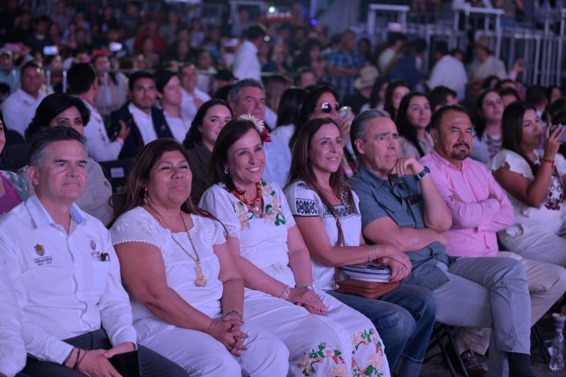 Previo a su presentación, la gobernadora Rocío Nahle García saludó a las y los integrantes, les dio la bienvenida y destacó su participación en un festival donde convergen distintas expresiones culturales y artísticas.