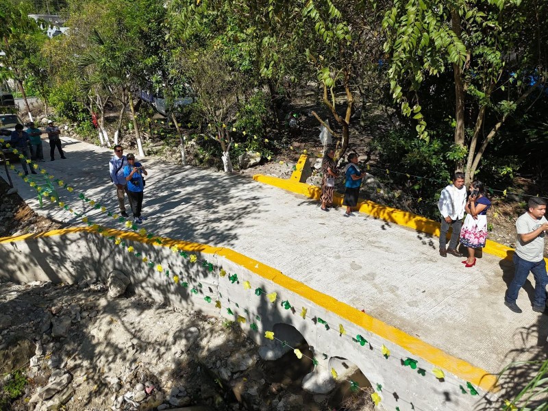 Se trata de la construcción de un puente que favorece a más de 15 familias, obra ejecutada con recursos federales destinados a pueblos indígenas, así como del arco de acceso principal a la comunidad, el cual fue realizado con fondos reunidos por los propios pobladores, reflejando su organización y trabajo en conjunto.