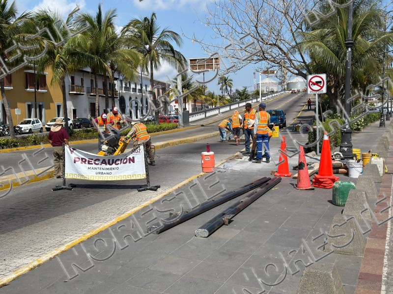 El paso en el Puente Morelos, de la zona del centro histórico de la ciudad de Veracruz se encuentra bloqueado debido a tareas de bacheo y reparación que realiza el ayuntamiento.
