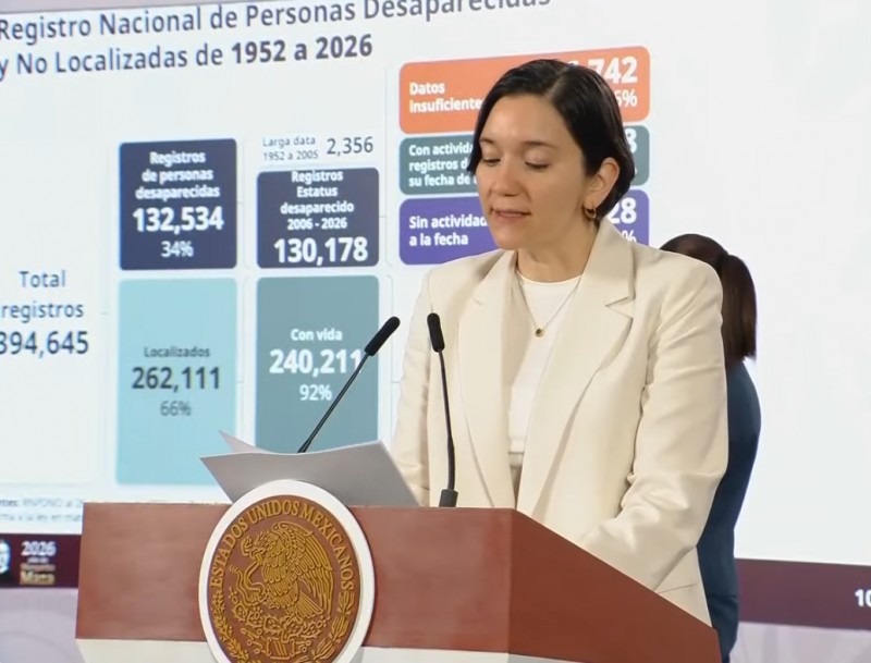 La secretaria ejecutiva del Sistema Nacional de Seguridad Pública (SESNSP), Marcela Figueroa, presentó una actualización estadística sobre la crisis de desapariciones en México, revelando que del periodo comprendido entre 2006 y marzo de 2026, el registro nacional acumula 130 mil casos vigentes.