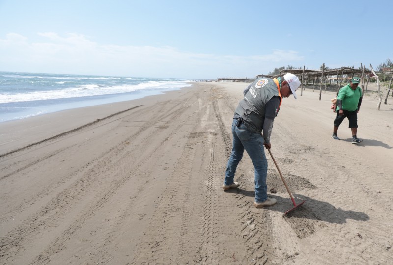 En coordinación con las secretarías de Protección Civil y Seguridad Pública, el Ayuntamiento de Úrsulo Galván y prestadores de servicios, se realizó la recolección de residuos de hidrocarburo en un tramo cercano a los dos kilómetros, derivados de material arrastrado por corrientes marinas del Golfo de México, sin que ello represente afectaciones para los visitantes.