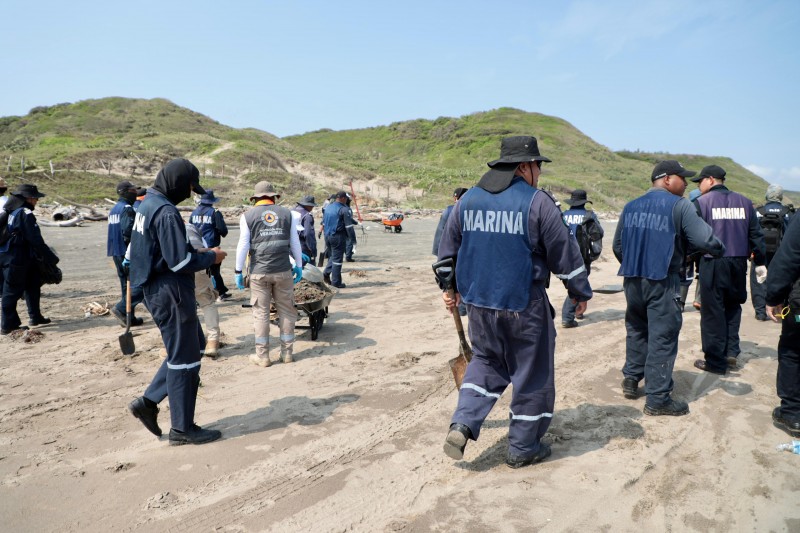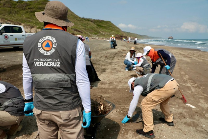 Brigadas del Plan Local de Contingencia, en coordinación con el Grupo Interinstitucional del Gobierno de México, realizaron labores de limpieza en un tramo aproximado de 3.5 kilómetros en las playas La Trocha y La Cava, en atención a la presencia de residuos en esta franja del litoral veracruzano.