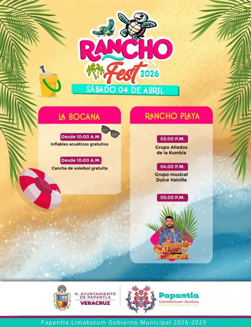 Para el sábado 4 de abril, las actividades continuarán en Rancho Playa, donde se desarrollarán talleres de pintura, dinámicas familiares organizadas por el DIF y un cierre artístico a las 17:00 horas cerrando con Calixto Méndez.