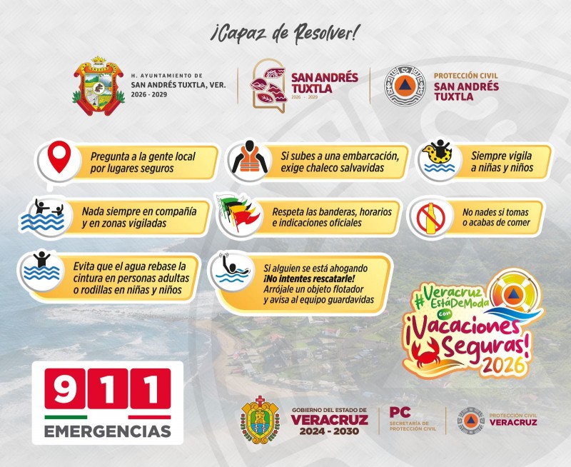Ante incremento en la afluencia de visitantes a playas de San Andrés Tuxtla, la dirección de Protección Civil Municipal exhorta a la ciudadanía a seguir las indicaciones de autoridades locales.