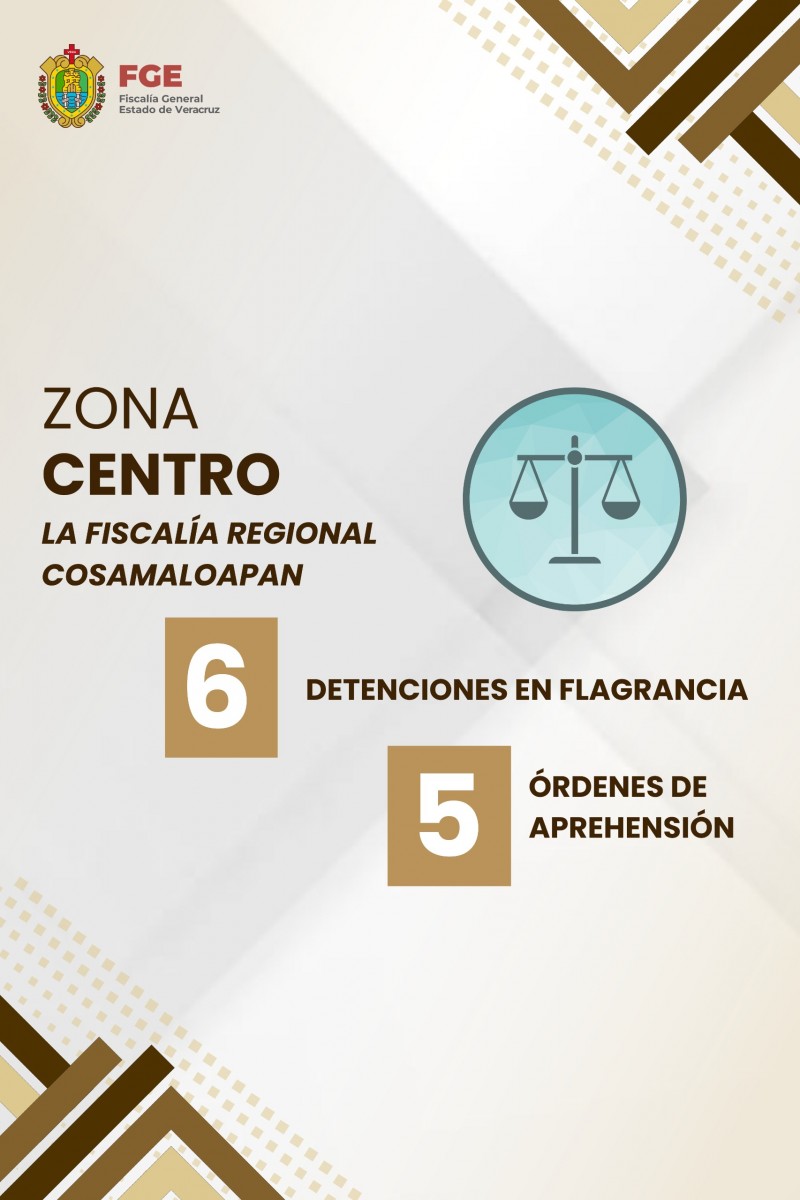 En lo que respecta a la zona sur, la Fiscalía Regional Coatzacoalcos cumplimentó 5 órdenes de aprehensión y realizó 7 detenciones en flagrancia.