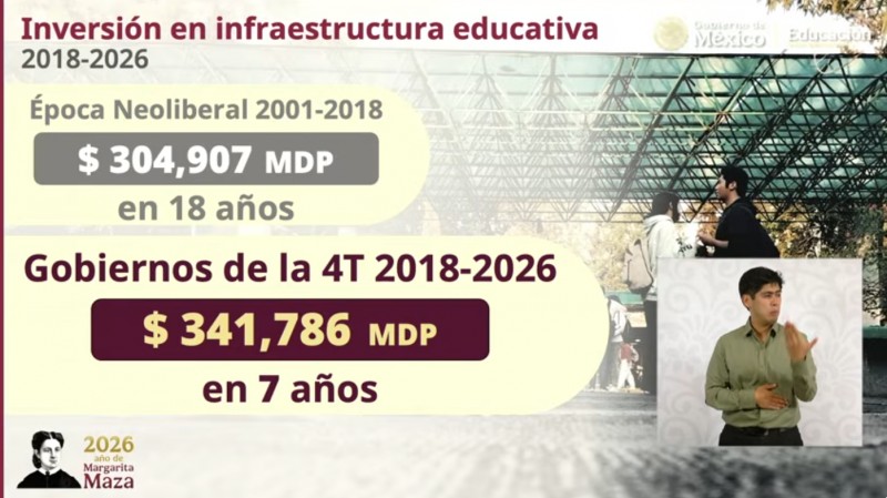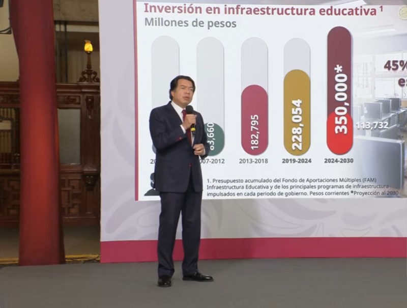 El funcionario detalló que, tan solo entre 2025 y 2026, la inversión alcanzará los 113 mil millones de pesos, de los cuales el 45 por ciento proviene directamente del esquema autogestivo de "La Escuela es Nuestra", eliminando intermediarios y permitiendo que padres y maestros decidan el destino del presupuesto para el mantenimiento y equipamiento de sus planteles.