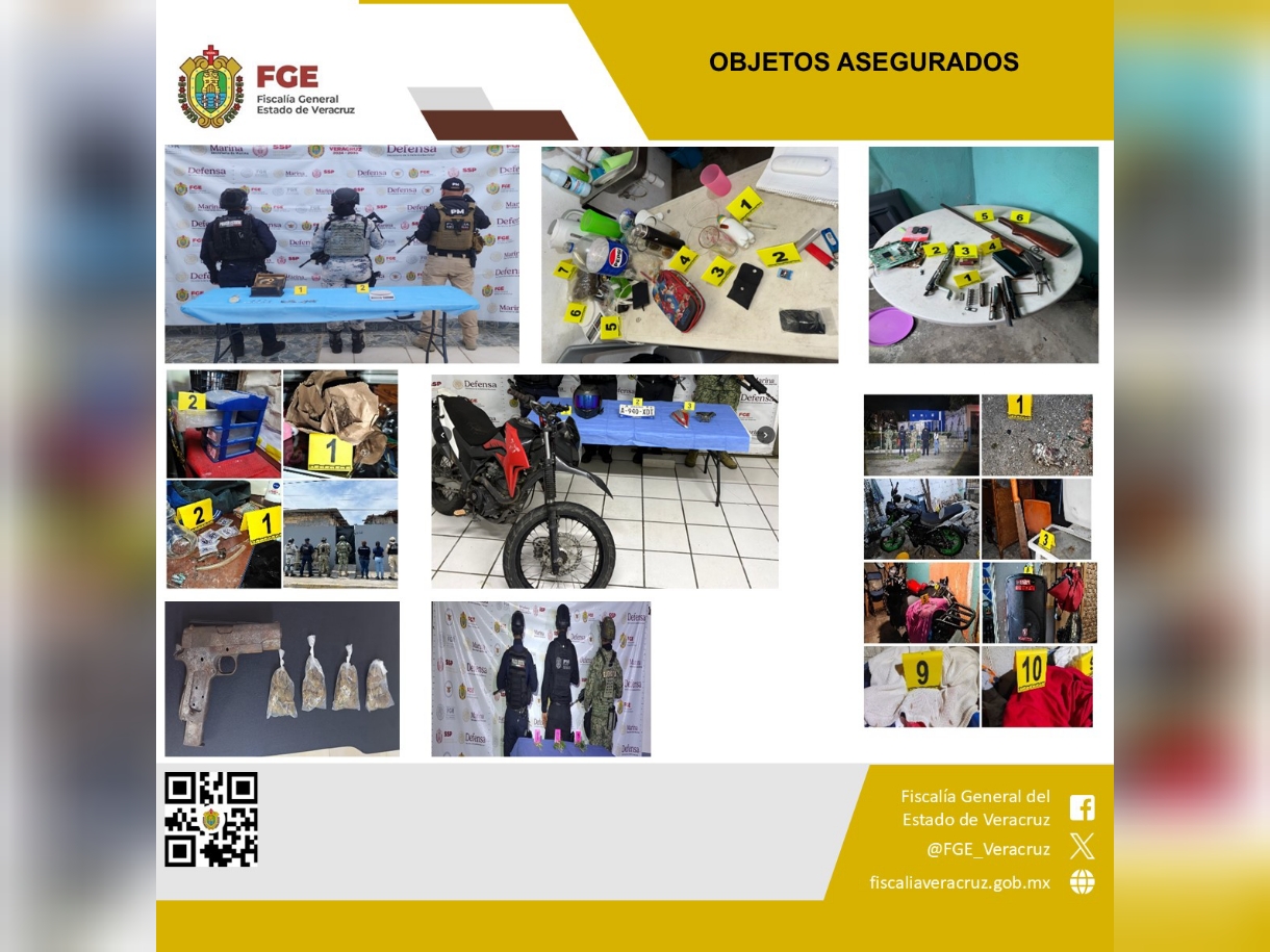 En el marco de una estrategia operativa orientada a fortalecer la paz social, durante el periodo del 30 de marzo al 5 de abril, la Fiscalía General del Estado de Veracruz, a través de sus fiscalías regionales, logró la detención en flagrancia de 33 personas presuntamente vinculadas a actividades ilícitas, durante la ejecución de 27 cateos autorizados por la autoridad judicial en 13 municipios.