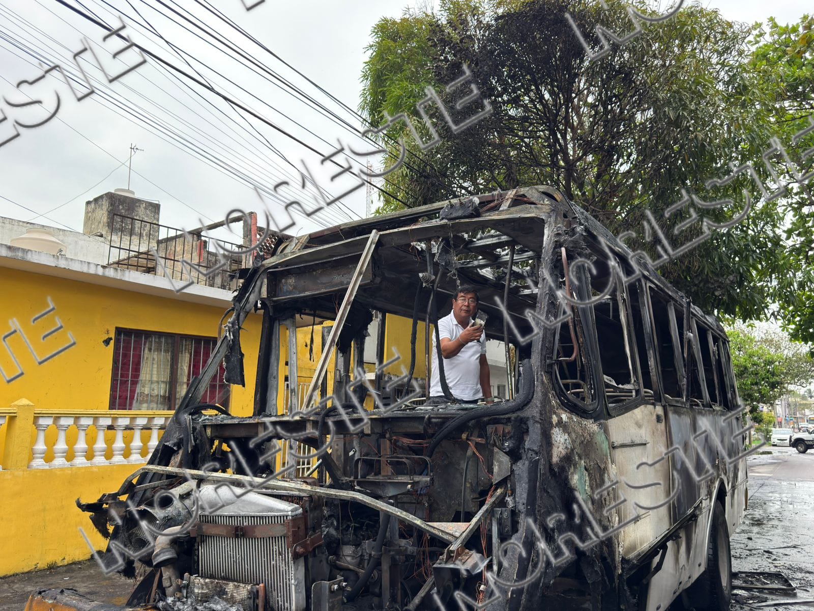 Un camión de transporte público ardió en llamas la mañana de este martes 7 de abril, en las calles 20 de Noviembre y Américas, en el fraccionamiento Virginia, de la ciudad de Veracruz.
