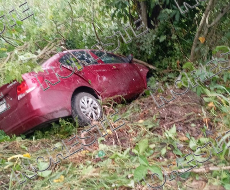 De acuerdo con los primeros reportes, un automóvil Chevrolet Aveo color rojo se impactó contra una camioneta Nissan NP300 de redilas que transportaba cajas de frutas y verduras. Tras la colisión, ambas unidades salieron de la cinta asfáltica y terminaron en el fondo de un barranco, resultando con severos daños materiales.