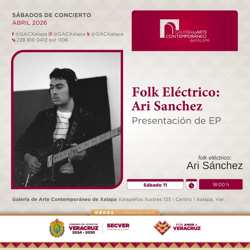 Las secretarías de Cultura y de Educación de Veracruz, invitan a los sábados de concierto, los días 11 y 25 de abril a las 18:00 horas, en la Galería de Arte Contemporáneo de Xalapa. La entrada es gratuita.