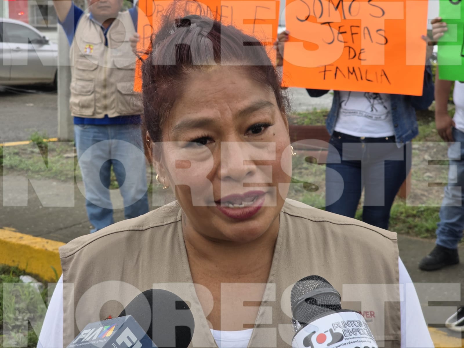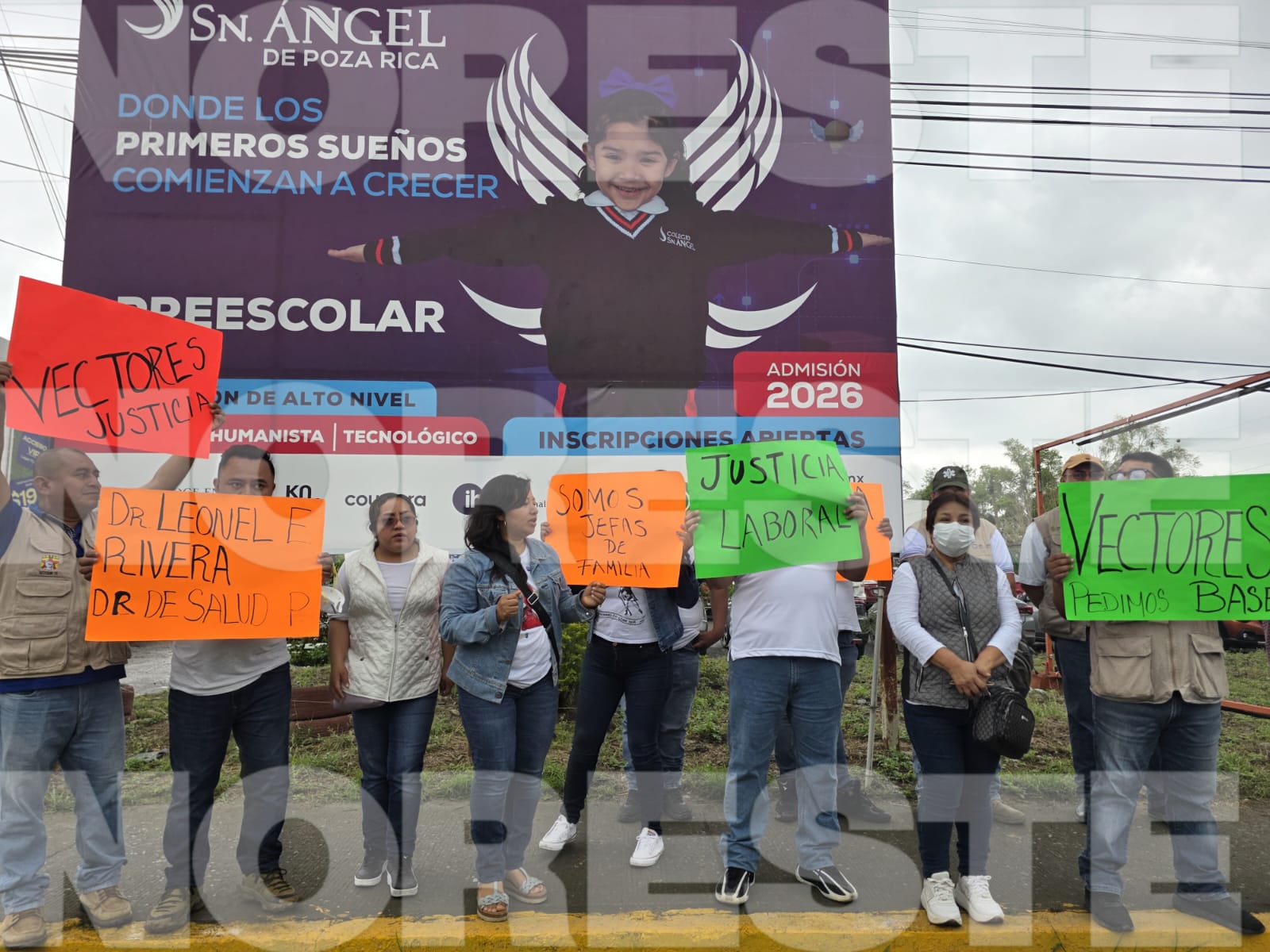 Un grupo de 40 trabajadores eventuales del departamento de Vectores del Sector Salud realizó una protesta pacífica sobre el bulevar Adolfo Ruiz Cortines, para exigir que se cumpla con la basificación que se lleva a cabo a nivel estatal.