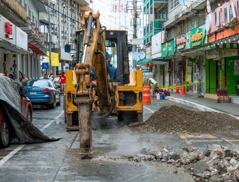 La Dirección de Obras Públicas realiza trabajos de reparación de dos baches sobre la avenida Juárez, en el tramo comprendido entre las calles Mina y Humboldt, en la zona Centro de la ciudad.