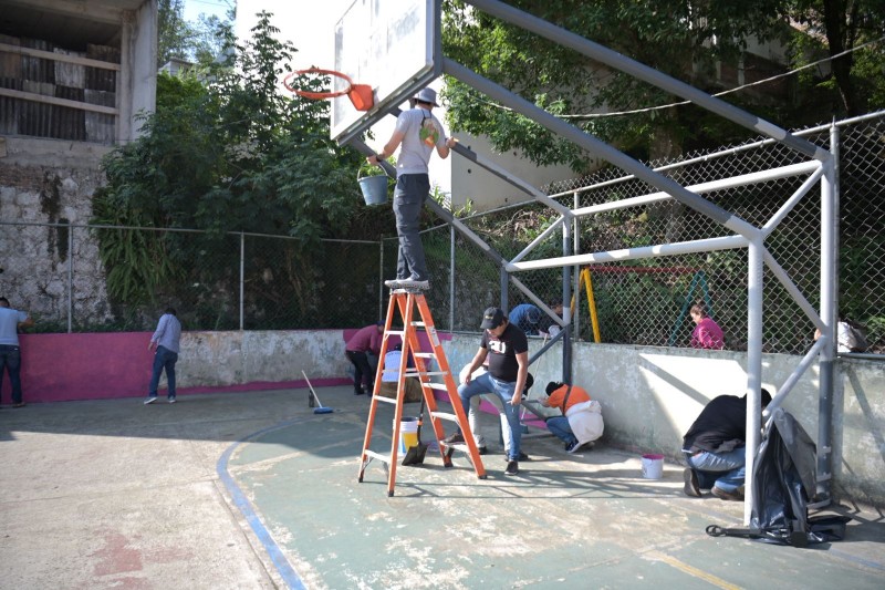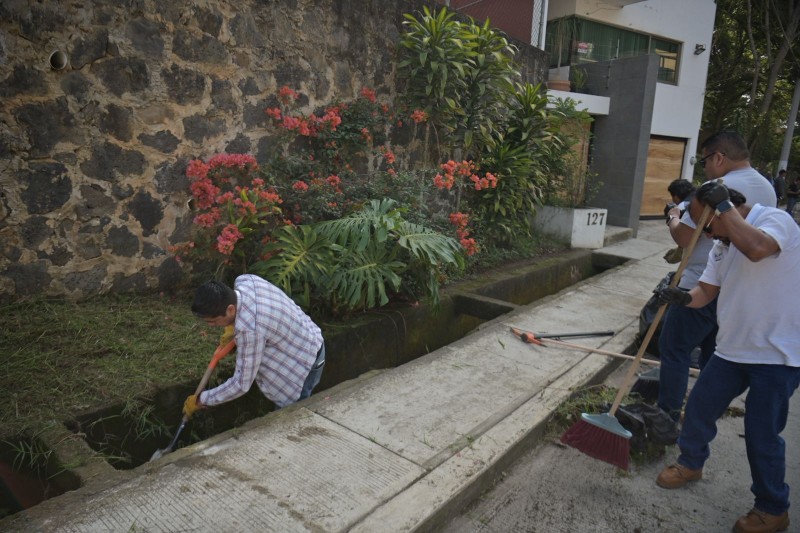 Como parte de la jornada, se llevó a cabo la limpieza de tragatormentas, desazolve de alcantarillas, aplicación de pintura en guarniciones.