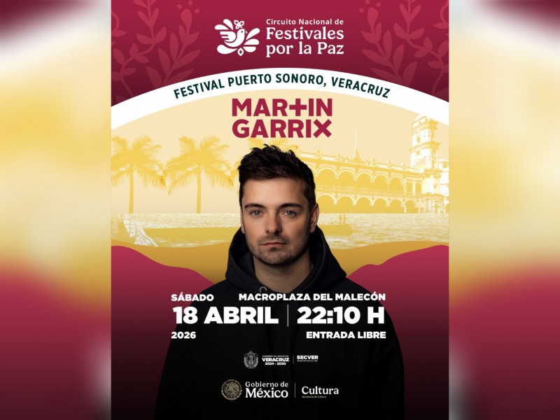 El famoso DJ neerlandés, Martin Garrix, encabezará la cartelera del Festival Puerto Sonoro de Veracruz con un concierto gratuito, que se realizará el próximo sábado 18 de abril en la Macroplaza del Malecón, como parte del Circuito Nacional de Festivales por la Paz que promueve el Gobierno de México, a través de la Secretaría de Cultura.