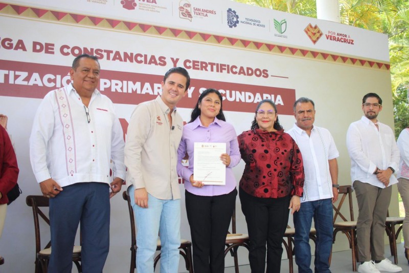 En presencia de la titular de la Secretaría de Educación de Veracruz, Claudia Tello Espinoza, la directora del IVEA, Claudia Aguilar Reyes, el director de Educación para los Adultos, Armando Contreras Castillo, y el director del Instituto Tecnológico de Minatitlán, Sergio Garibay Armenta, personas adultas que decidieron derribar las barreras que les impedían estudiar recibieron su constancia por haber concluido su primaria y secundaria.
