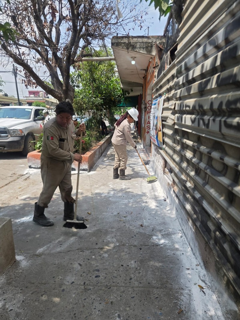 En la zona afectada también se brinda atención directa a la ciudadanía que resultó perjudicada por este residuo, ofreciendo apoyo en la rehabilitación de sus espacios. Entre las acciones destacan trabajos de restauración de pintura, limpieza de banquetas y recuperación de jardines en diversos domicilios.