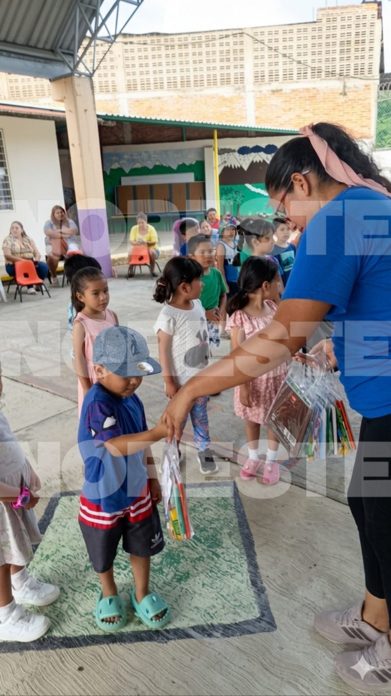 La institución educativa sufrió la pérdida de material escolar debido a las lluvias, lo que dejó a varias familias en situación vulnerable y complicó el regreso a clases de los menores, quienes ahora cuentan con herramientas básicas para continuar su formación académica.