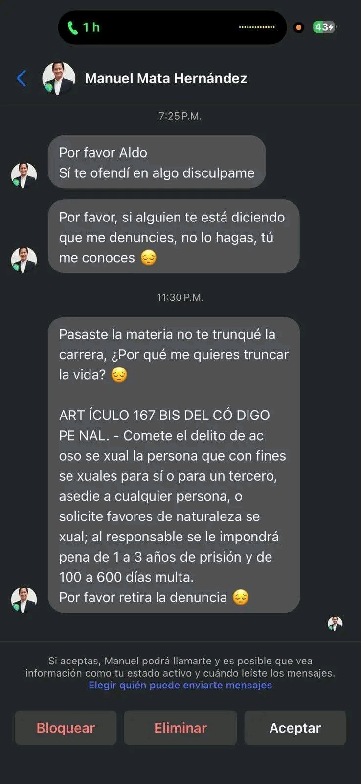 De acuerdo con el testimonio del afectado, el hostigamiento comenzó cuando solicitó apoyo académico al docente para acreditar su materia.