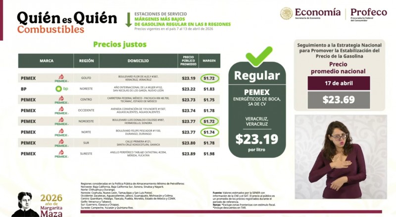 Actualmente, el organismo reporta que el 54.6% de las estaciones de servicio supervisadas está cumpliendo con la venta del combustible a un precio inferior a los 28.28 pesos.