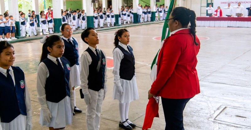 Con respeto y orgullo, autoridades municipales participaron esta mañana en un acto cívico realizado en la Escuela Primaria Miguel Lerdo de Tejada, en el municipio de Tuxpan.