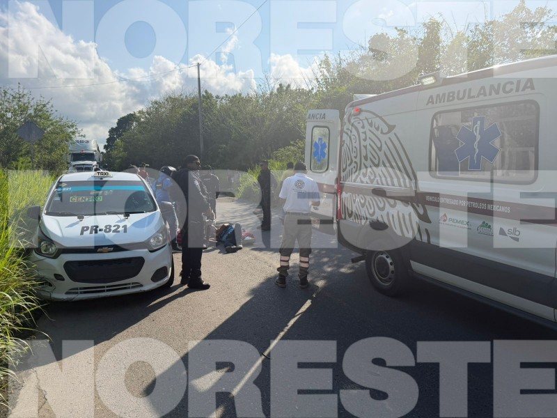 Un motociclista resultó lesionado, con probable fractura, luego de impactarse contra la parte trasera de un taxi sobre la carretera que comunica a Poza Rica con Santa Águeda, a la altura de la localidad La Grandeza, perteneciente al municipio de Papantla.