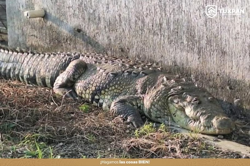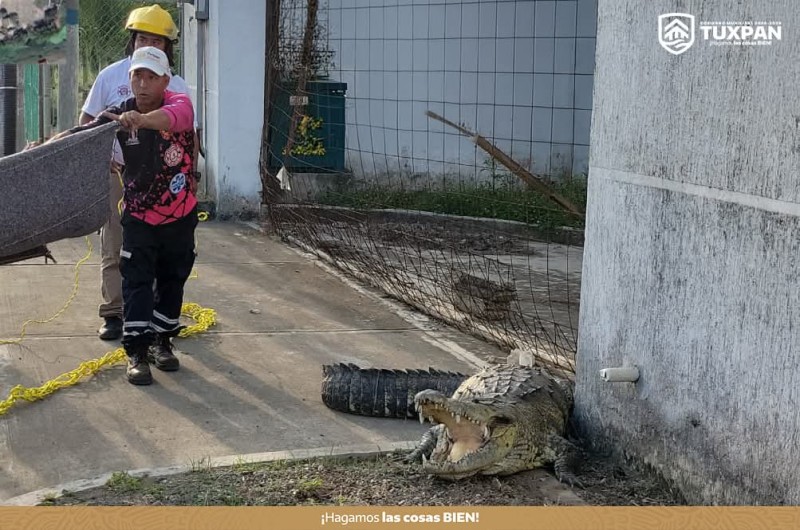 La oportuna intervención de elementos de Protección Civil y Bomberos de Tuxpan permitió el aseguramiento de un cocodrilo que fue reportado deambulando en la vía pública, en el libramiento Adolfo López Mateos, a la altura de la colonia Ampliación Rodríguez Cano.