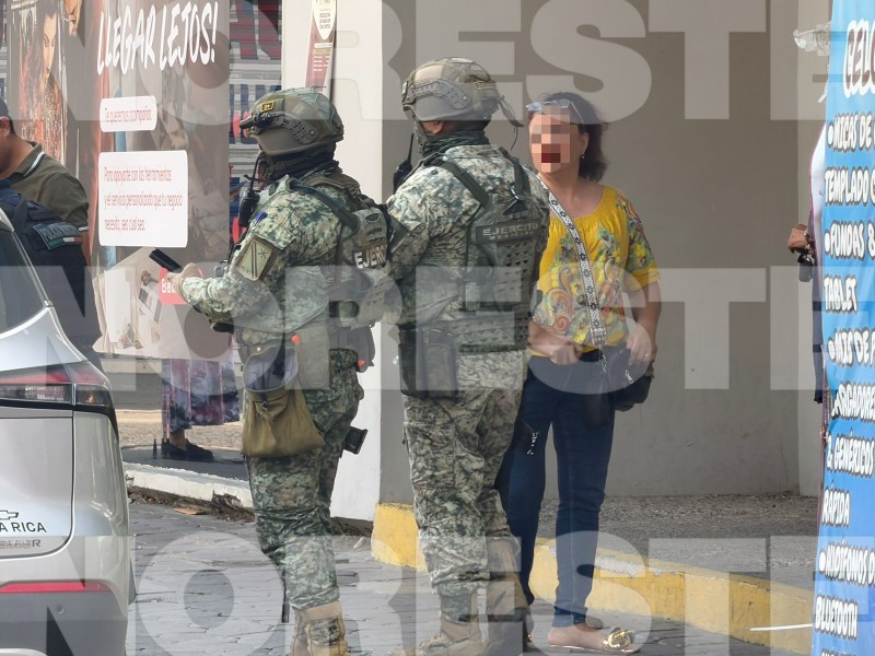 De acuerdo con los primeros reportes, el incidente fue alertado a través del número de emergencias 911, lo que provocó la rápida intervención de elementos de la Policía Municipal, quienes arribaron como primeros respondientes y procedieron a acordonar la zona, cerrando completamente la vialidad frente a la institución bancaria.