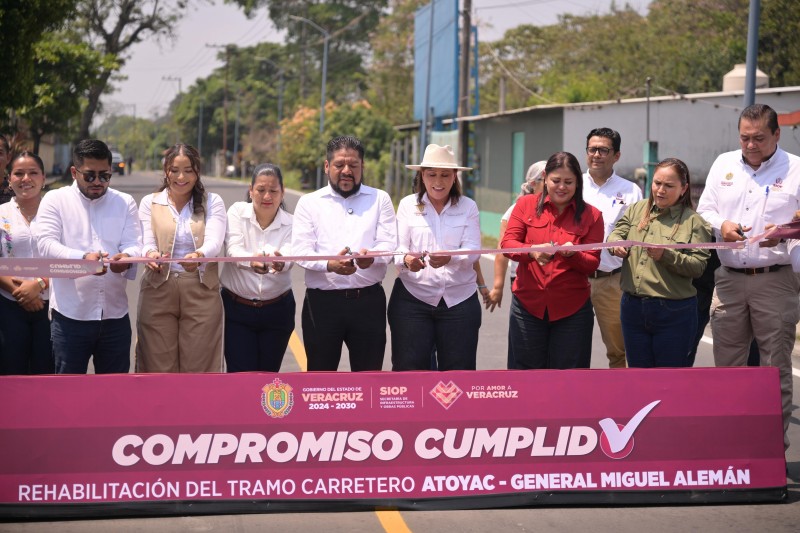 La gobernadora Rocío Nahle García encabezó la entrega de la rehabilitación del tramo carretero Atoyac – General Miguel Alemán – entronque 150D Córdoba, obra que cumple un compromiso con la población y consolida la presencia de la Cuarta Transformación en la región centro del estado.