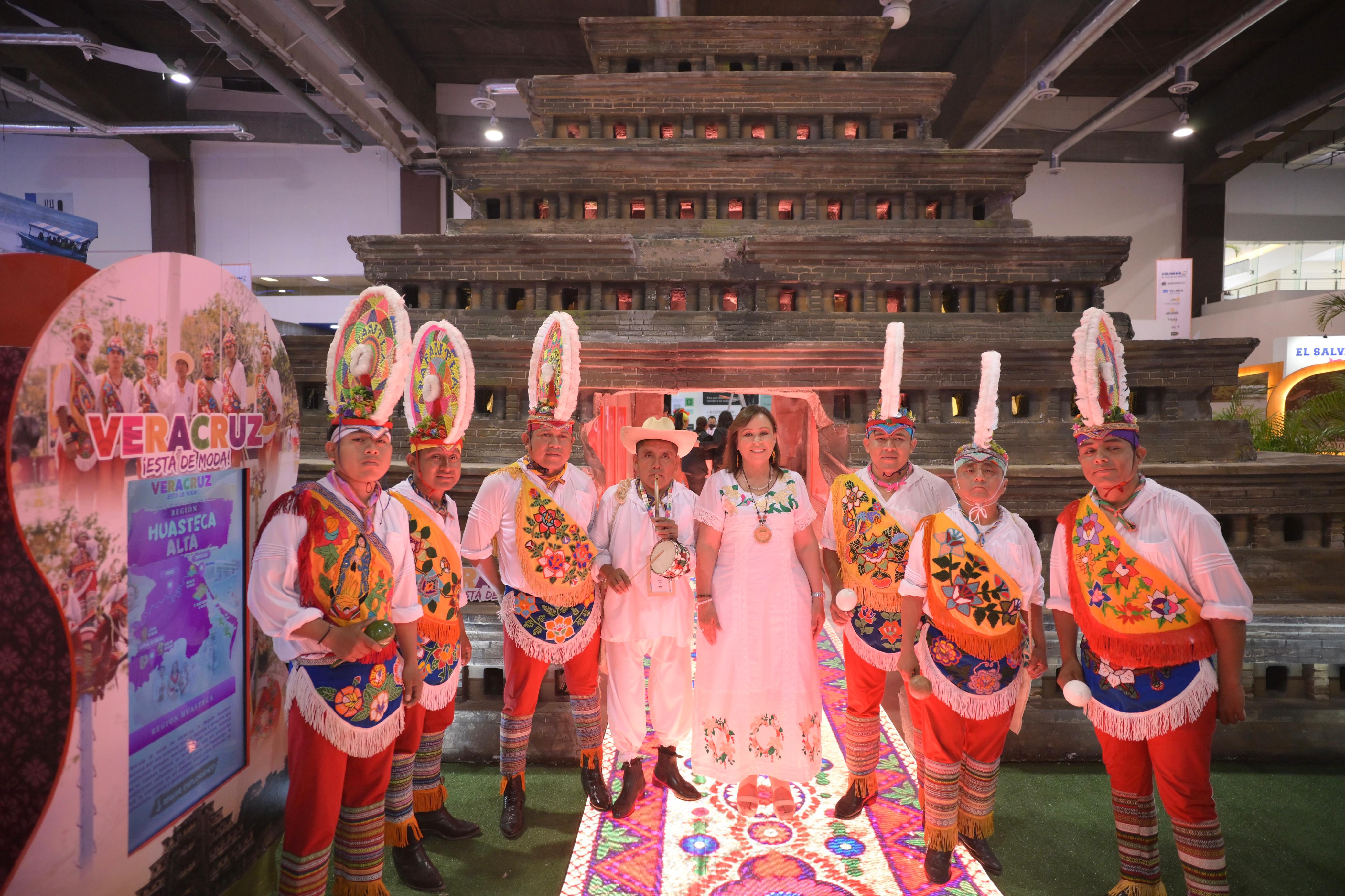 El pabellón de Veracruz se ha consolidado rápidamente como uno de los puntos más atractivos de la exposición. Estratégicamente ubicado junto a los espacios de Guerrero y Colombia —país invitado de honor—, el stand cautiva a los visitantes con una imponente réplica de la pirámide de El Tajín, símbolo del legado arqueológico del estado.