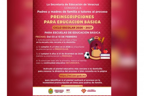 Publica SEV convocatoria para preinscripciones en Educación Básica