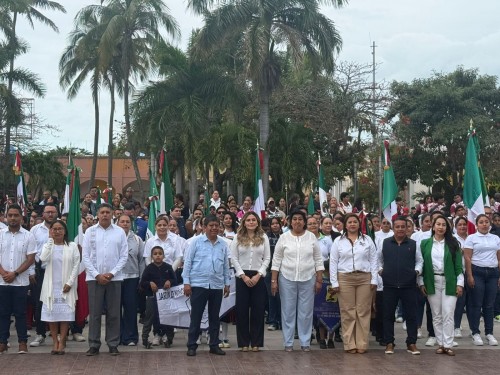 Gobierno del Estado brinda atención oportuna a estudiantes durante acto del Día de la Bandera