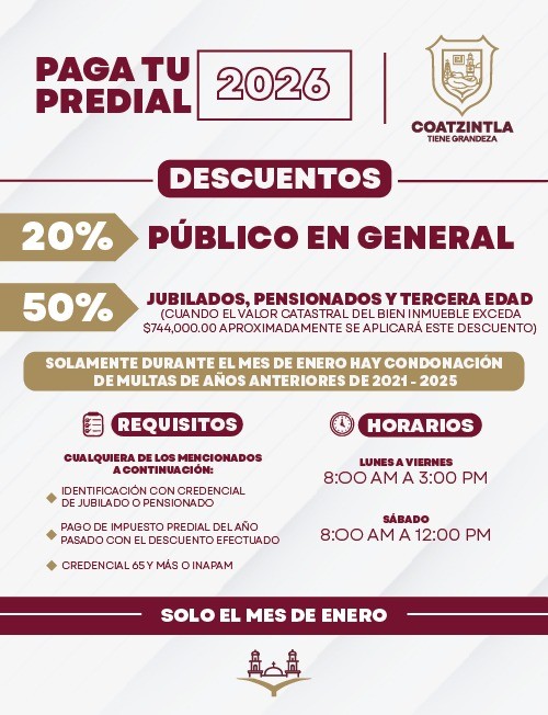 Coatzintla impulsa el pago del predial con promociones durante enero