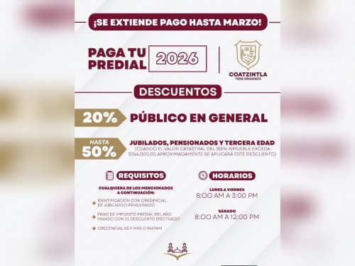 Amplían plazo para el pago del predial en Coatzintla hasta marzo