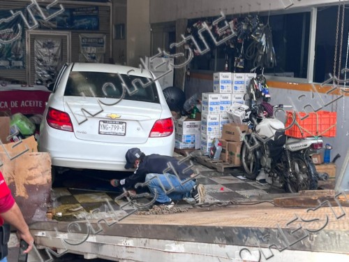Auto se impacta contra negocio tras choque en avenida Cuauhtémoc en Veracruz