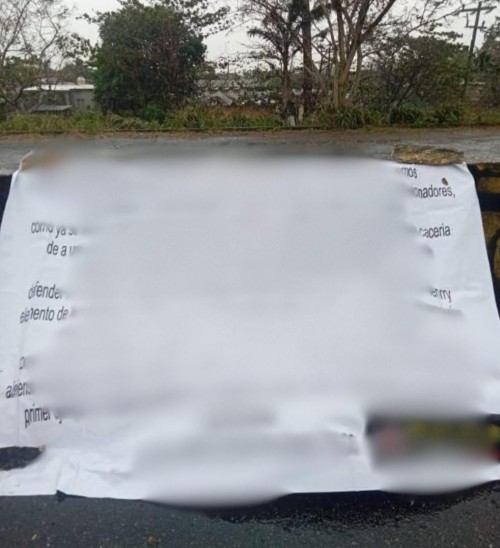 Localizan lona con 4m3n4z4s en puente abandonado del distribuidor vial de Coatzacoalcos
